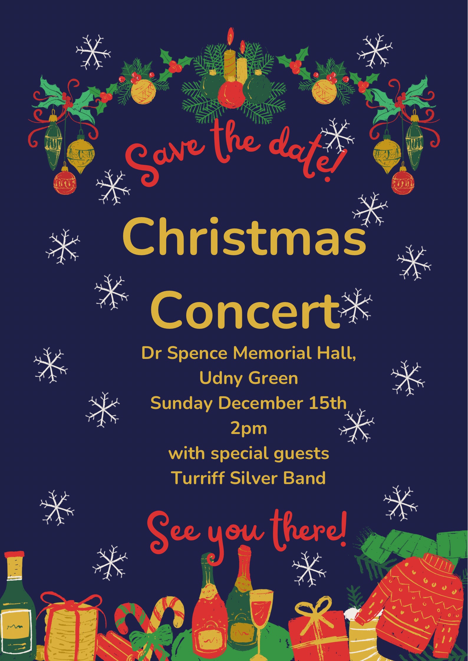 Come and enjoy some festive tunes courtesy of Turriff Silver Band. Refreshments will be on sale with all proceeds supporting the Dr Spence Memorial Hall. Look out on local social media pages for more information.